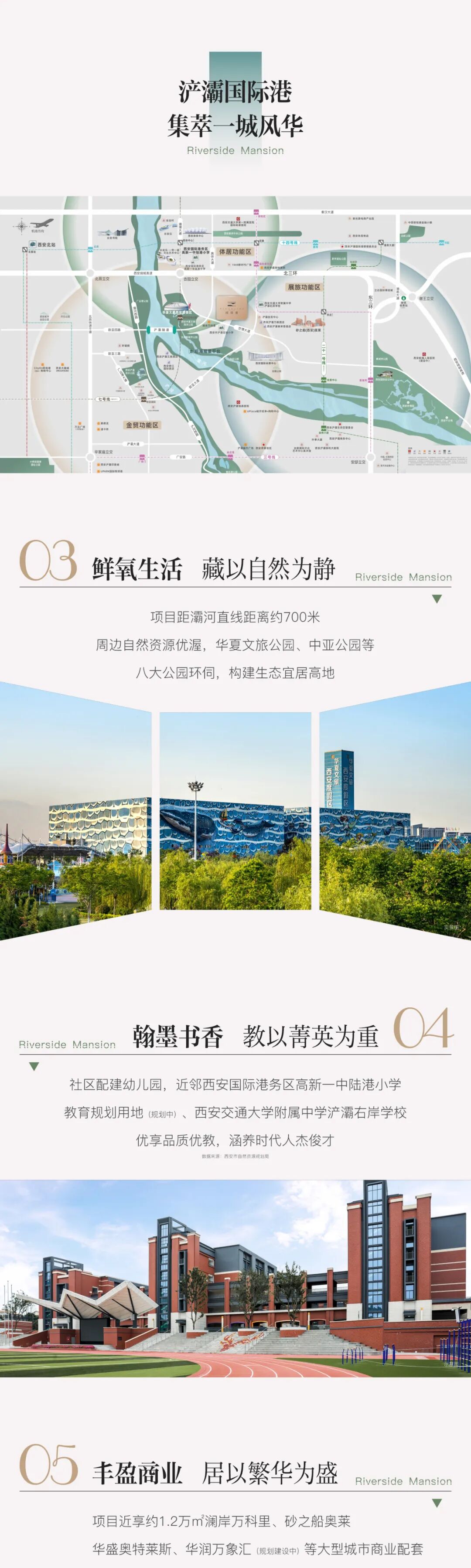 本宣传材料仅供项目介绍,对周边环境、政府规划、商业配套、教育配套等的介绍仅为提供相关信息,并不意味着对此作出任何承诺。具体以政府最终审定的图纸和双方签署的《商品房买卖合同》为准。在法律法规允许范围之内,最终解释权归开发商所有。发布时间:2024年8月。预售证号:浐灞预售字第2024413号